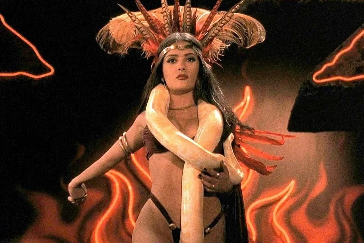 Not even the horrific turn-off of Tarantino sucking on her foot can stop Salma Hayek’s python-wrangling stripper from making this list.