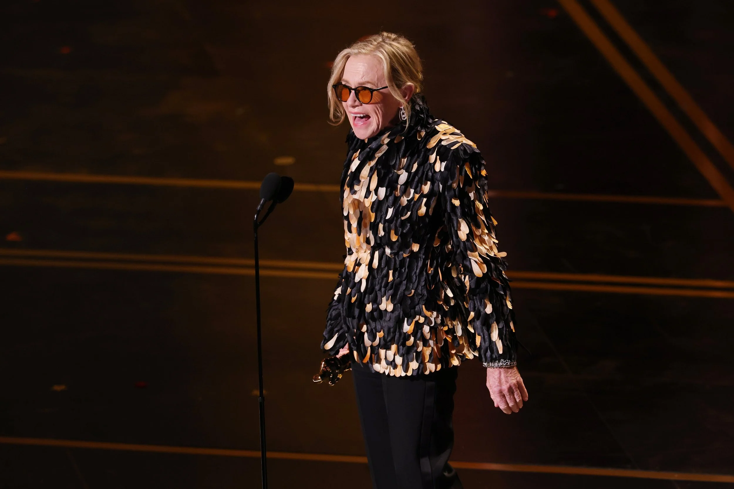 Amy Madigan Wins the Oscar for Best Supporting Actress with Her Performance as Aunt Gladys in Weapons