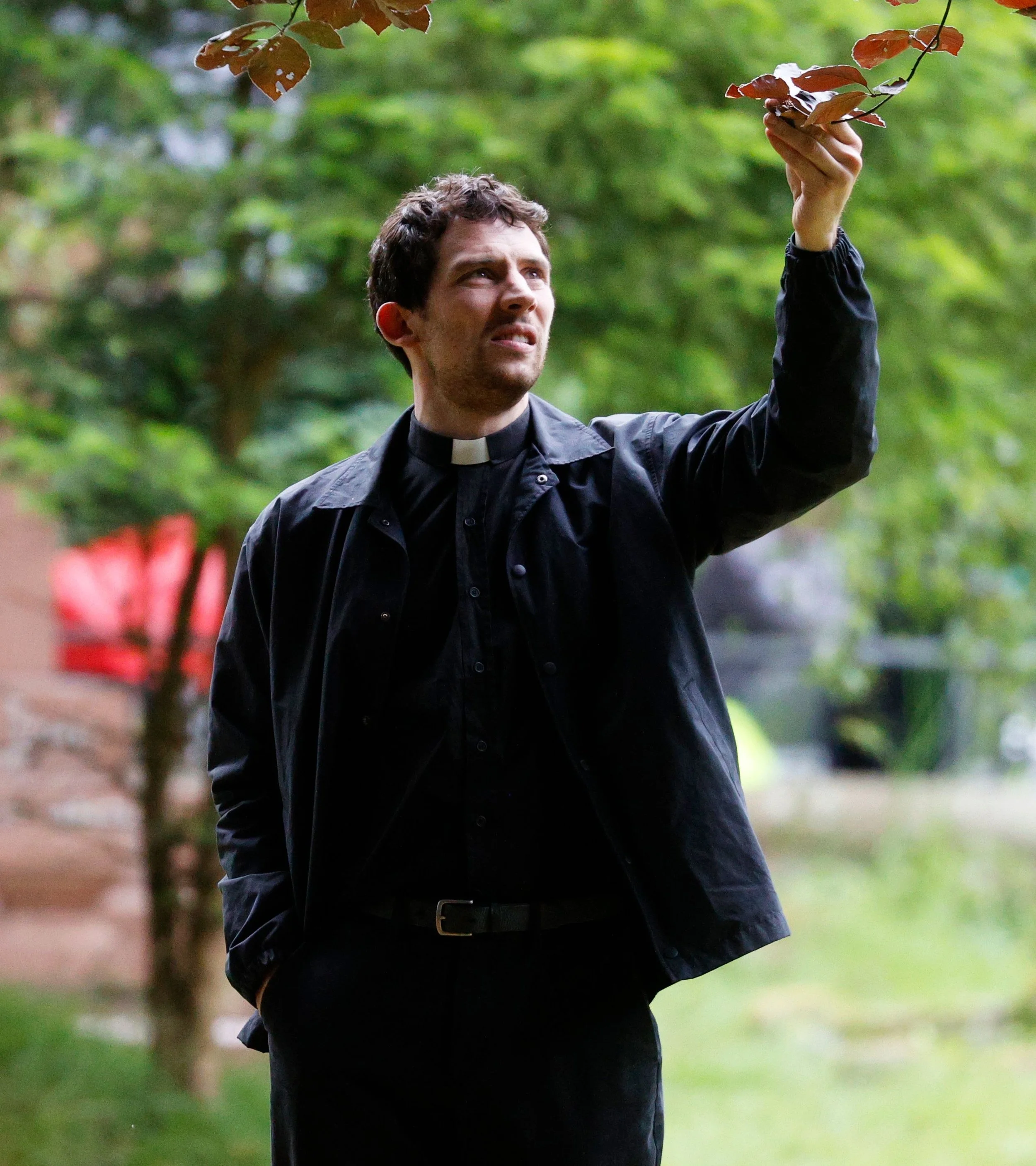 That very same crowd contains our suspects, whom Johnson economically introduces with sardonic flair. There’s Martha Delacroix (Glenn Close), a devout believer who’s given her life to the church; Nat Sharp (Jeremy Renner), the town doctor left by his wife and kids; Vera Draven (Kerry Washington), a local attorney burdened with furthering her father’s legacy; Lee Ross (Andrew Scott), a sci-fi writer on a downslide who’s out to escape the “liberal hive mind”; Simone Vivane (Cailee Spaeny), a world-class cellist afflicted by a career-ending chronic pain condition; Cy Draven (Daryl McCormack), a failed politician who turns Monsignor Wicks into a YouTube sensation; and Samson Holt (Thomas Haden Church), the groundskeeper enamoured with Martha. That said, all fingers point to Father Jud (Josh O’Connor), who was outspokenly against Wick’s cruel, cult-like ways.